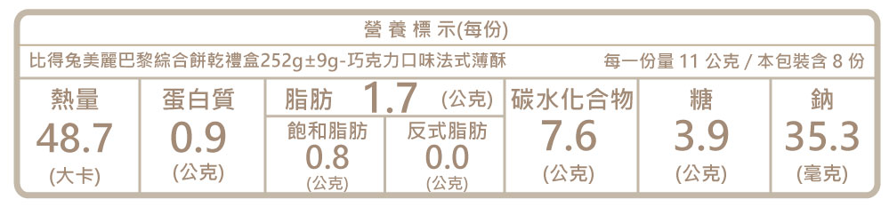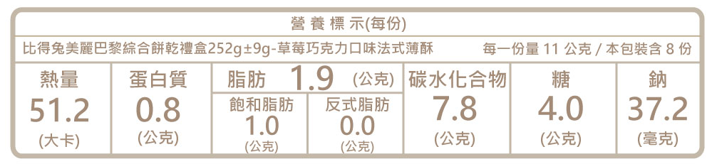 成分:小麥麵粉、人造奶油、蔗糖、鹽、牛奶香料